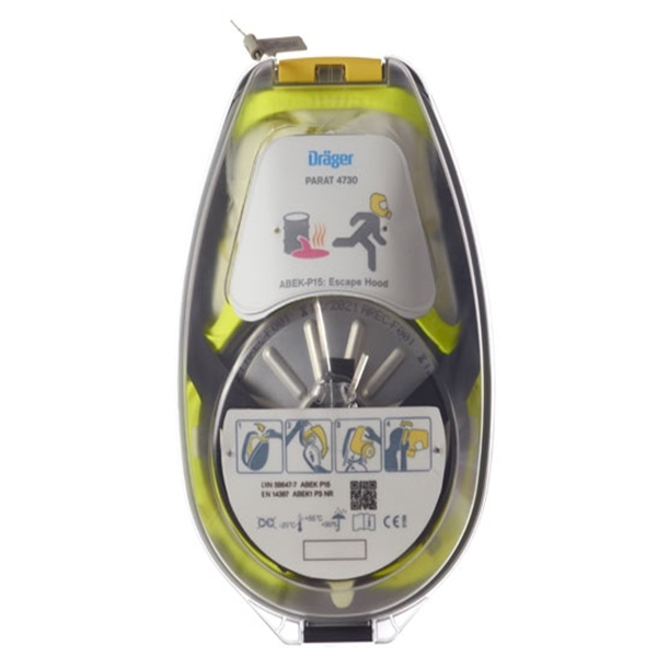 Dräger PARAT 4700 endüstriyel kaçış başlığı, mümkün olduğunca hızlı bir kaçışın sağlanması dikkate alınarak kullanıcılarla beraber geliştirilmiştir. Optimize edilmiş kullanım ve takış konforu, sağlam gövdesi ve denenmiş ABEK P3 filtresi ile en az 15 dakika boyunca endüstriyel toksik gaz, buhar ve partiküllere karşı koruma sağlar.